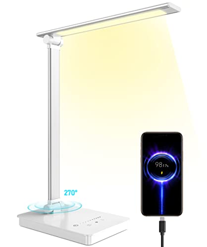 Amazon 限定ブランド Hriiiiya デスクライト LED USBポート付き、10段階明るさ、タイマー機能